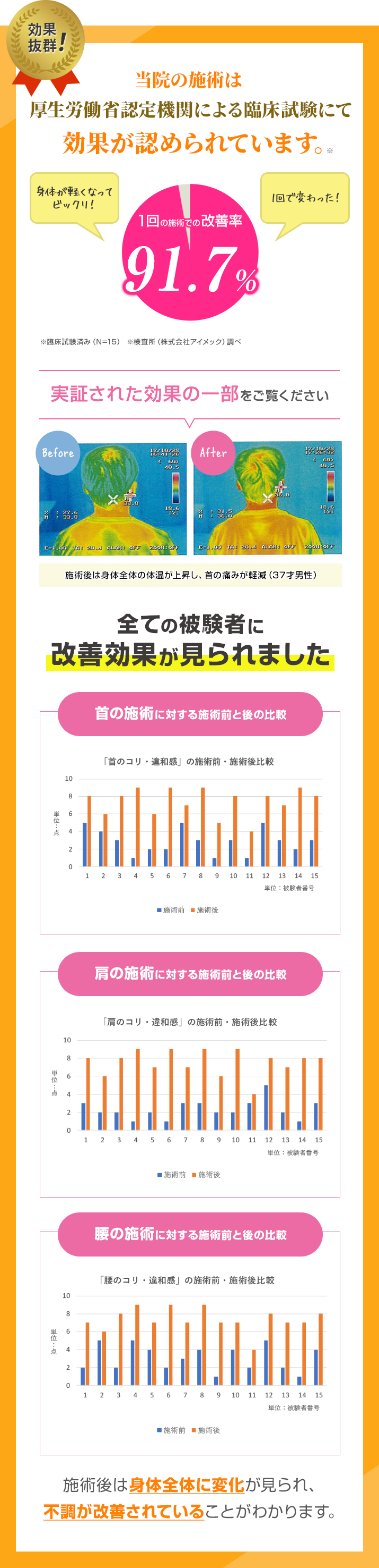 他院では施術前と後で効果を実感できない。というお声を聞きます。